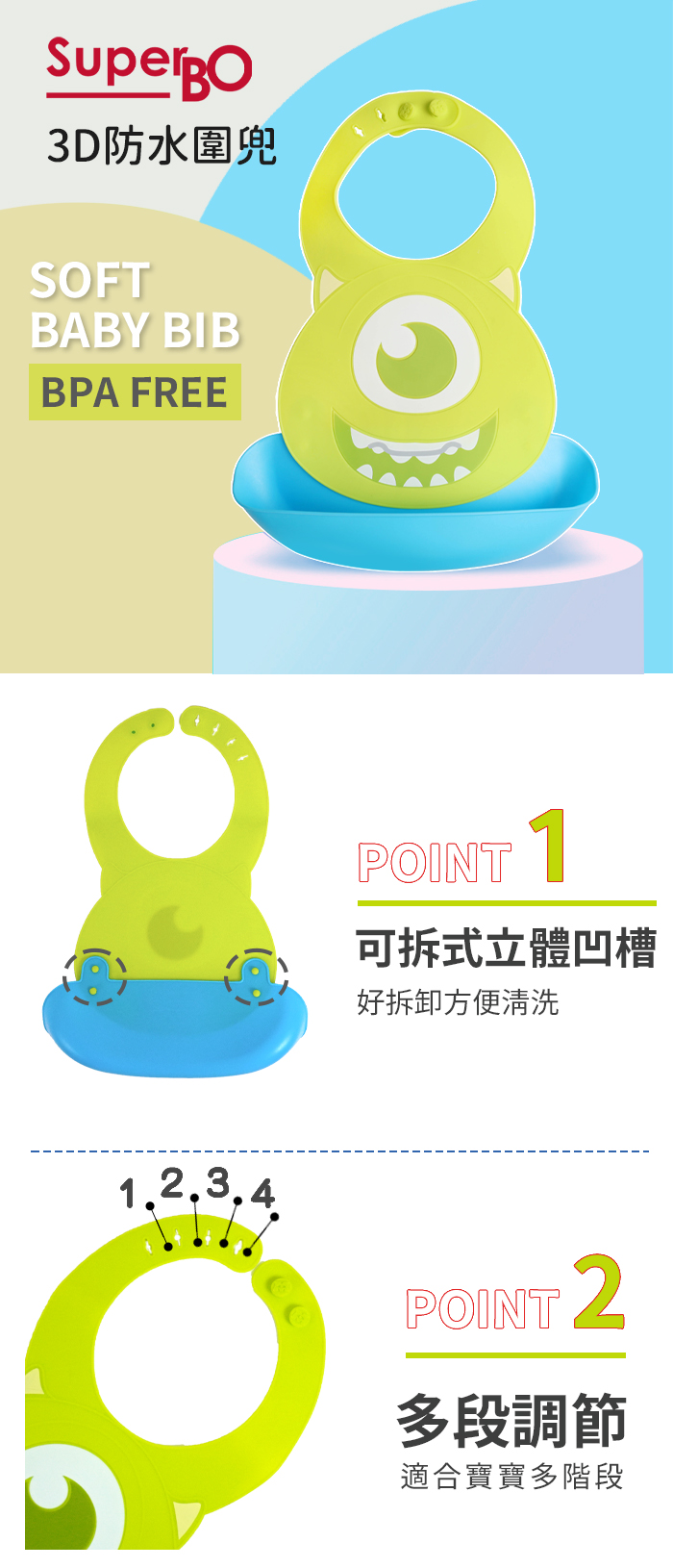 SuperBO 3D防水圍兜-大眼仔