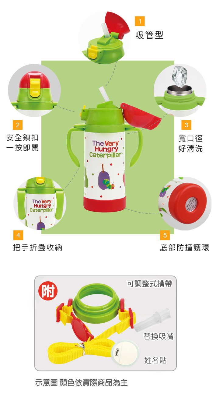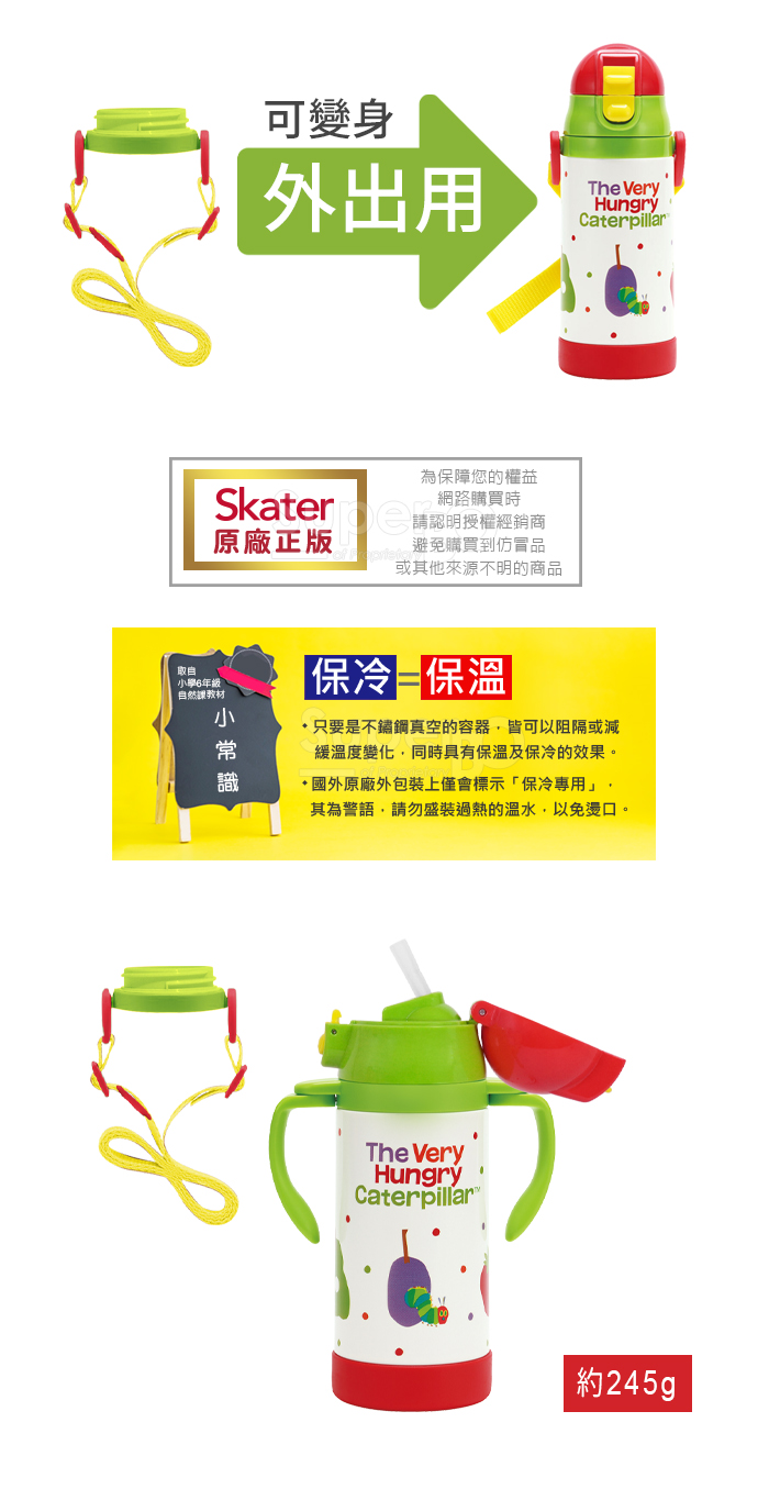 Skater吸管型不鏽鋼兩用杯(350ml)好餓的毛毛蟲