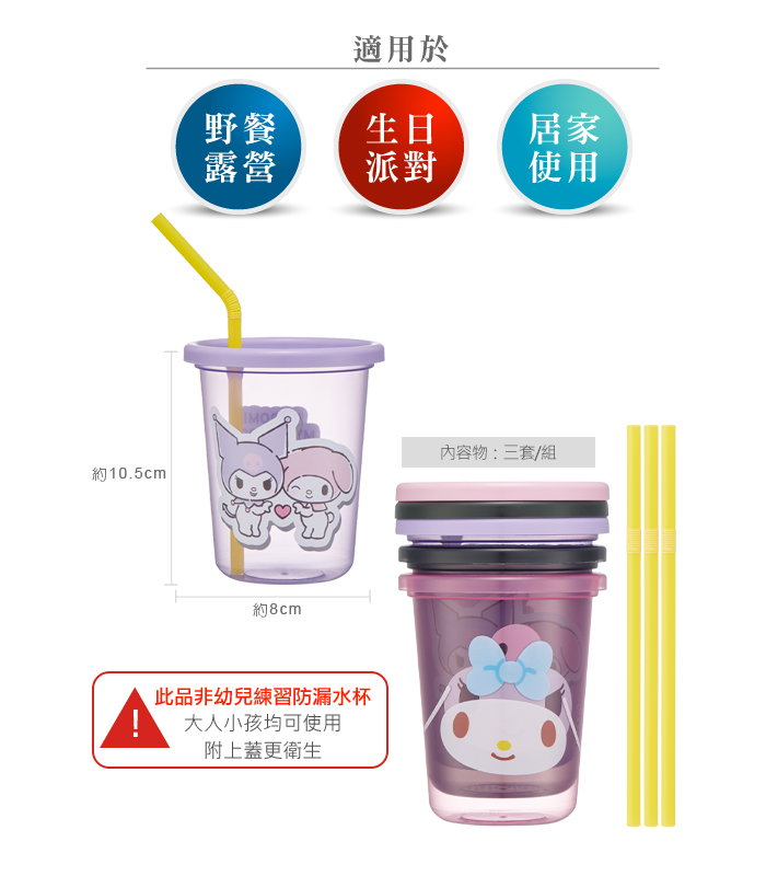 內容物:杯子(含蓋)*3、拋棄式吸管*3