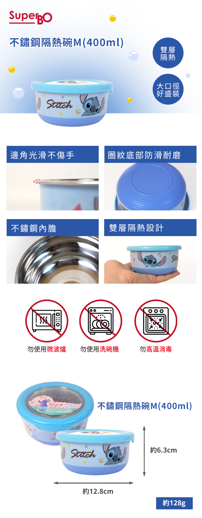 SuperBO 不鏽鋼隔熱碗M(400ml)史迪奇