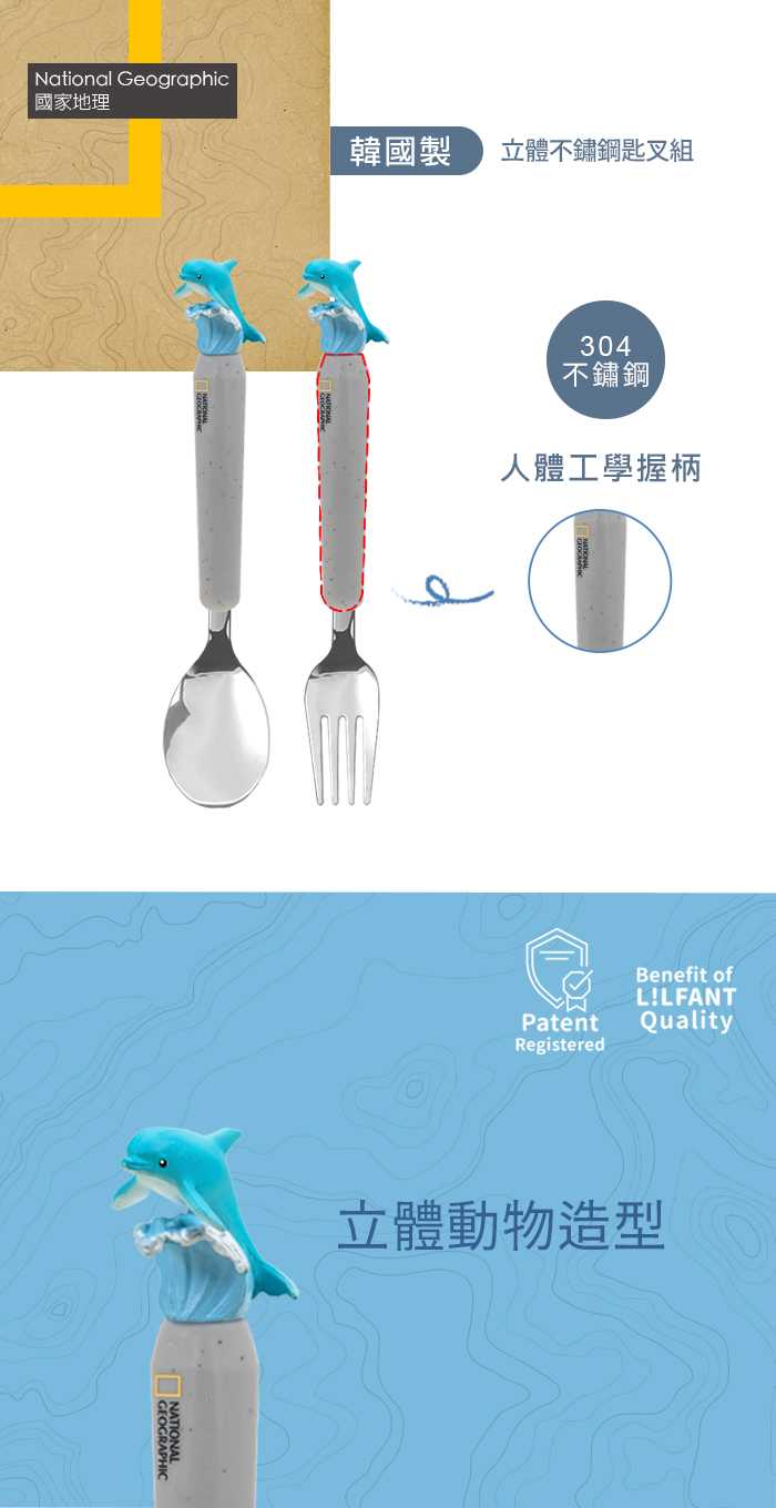 National Geographic國家地理 立體不鏽鋼匙叉組-海豚Dolphin