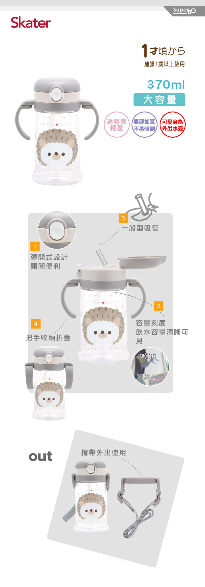 ◆附加揹帶環,可變身為外出水壺。