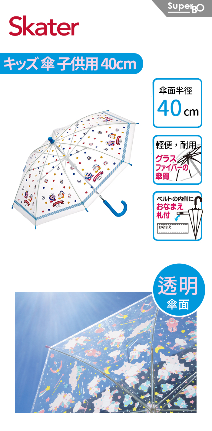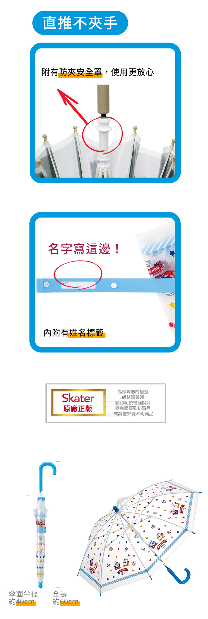 ◆傘面透明設計,搭配反光條,保護孩童行走安全。
