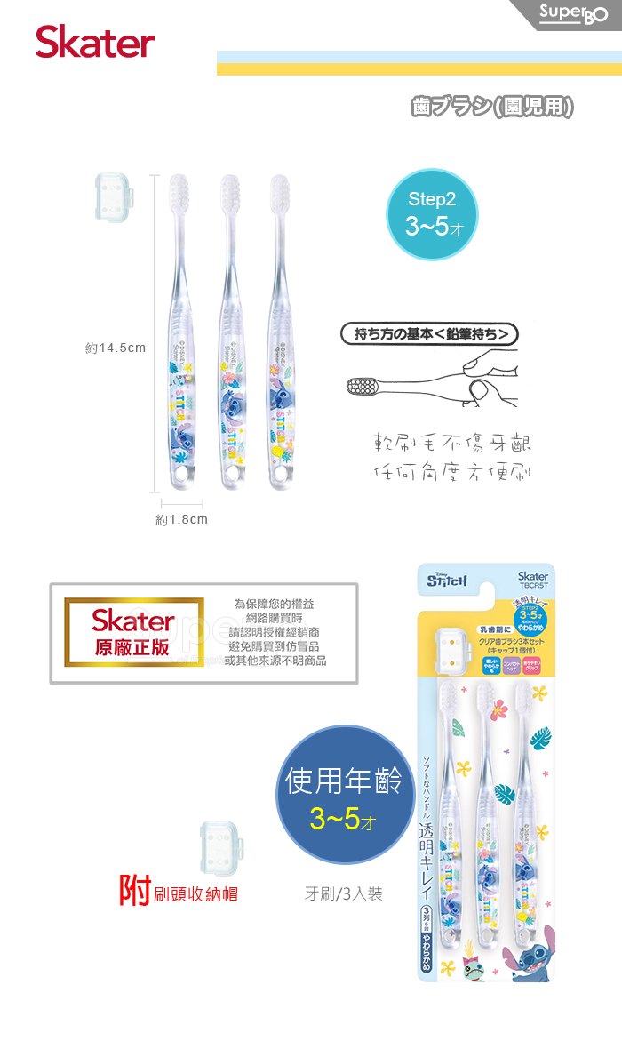 Skater兒童牙刷(3-5歲)3入組-史迪奇