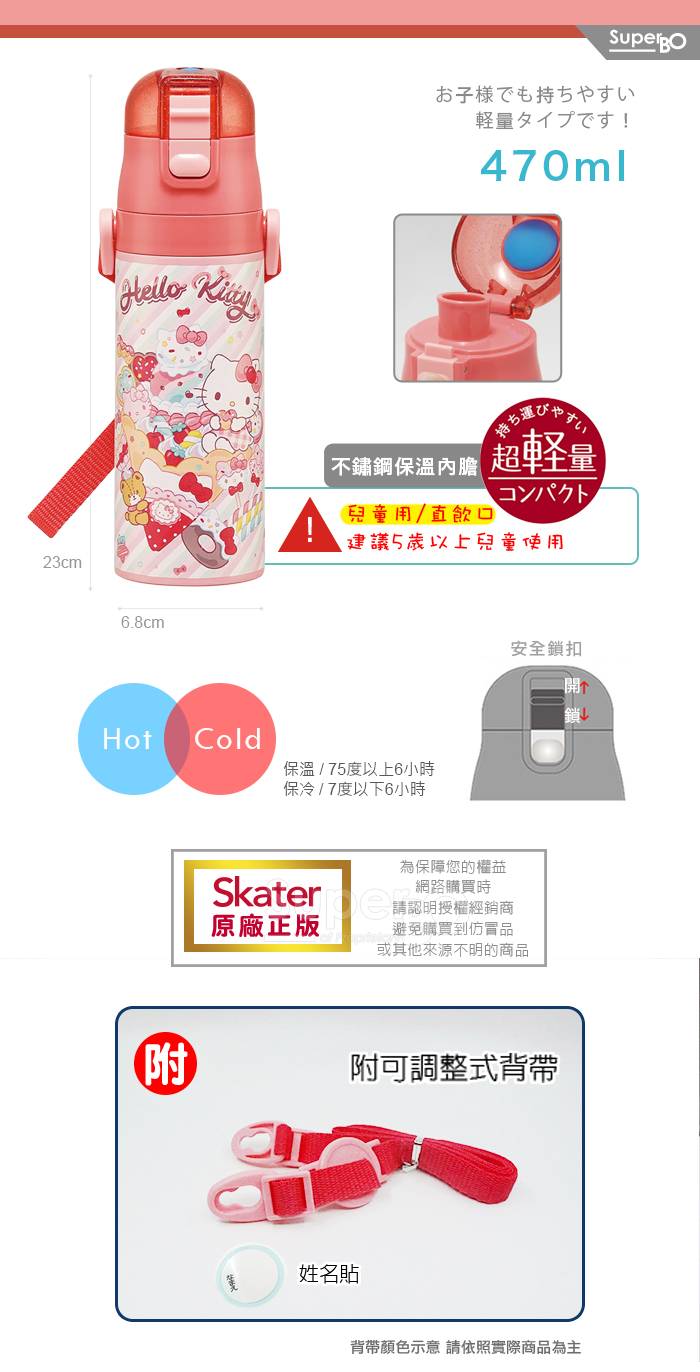 Skater不鏽鋼直飲保溫水壺(470ml) 專為兒童設計,輕量易攜,