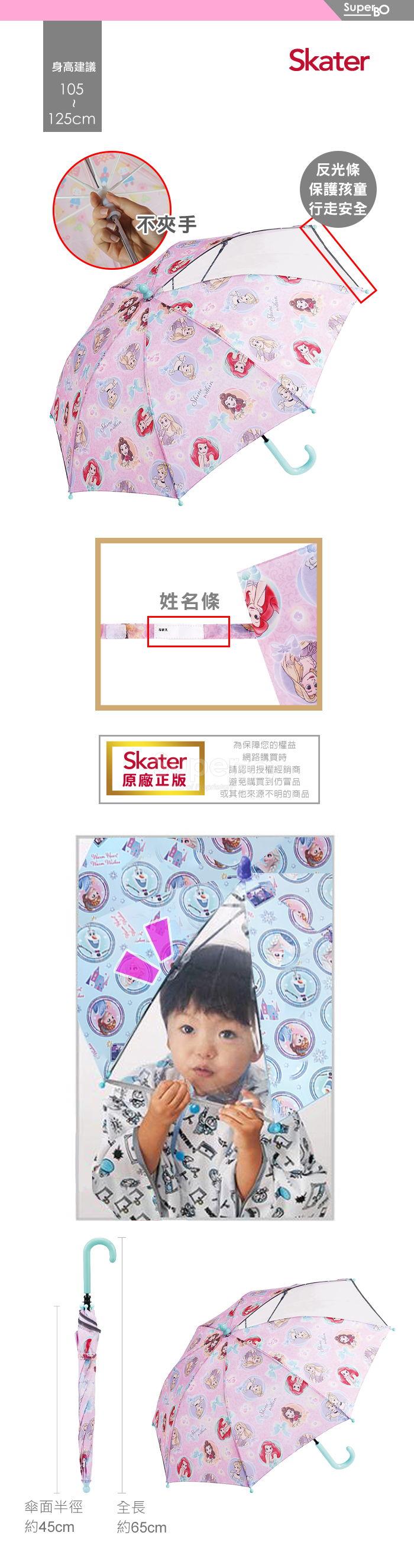 Skater兒童雨傘(45cm)迪士尼公主-粉