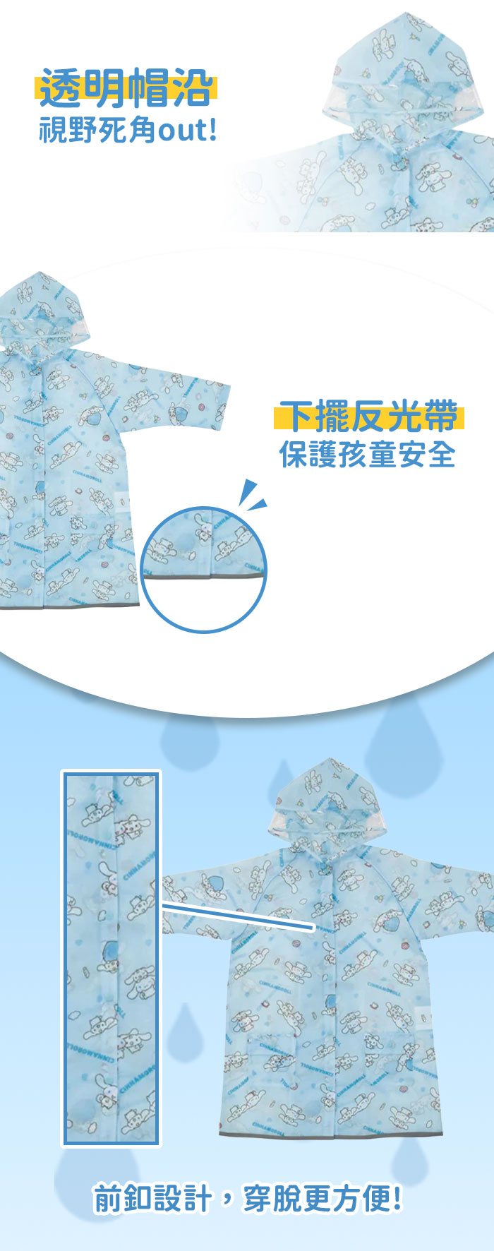 ◆下擺有反光帶,保護孩童行走安全。