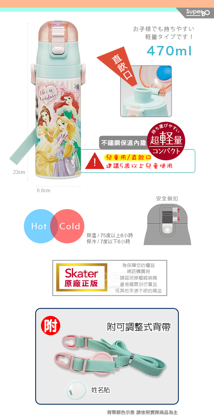 Skater不鏽鋼直飲保溫水壺(470ml) 專為兒童設計,輕量易攜,