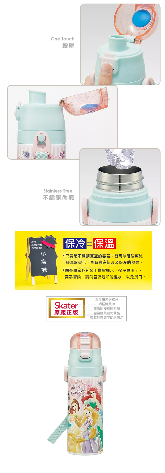 Skater不鏽鋼直飲保溫水壺(470ml) 迪士尼公主Fairytale