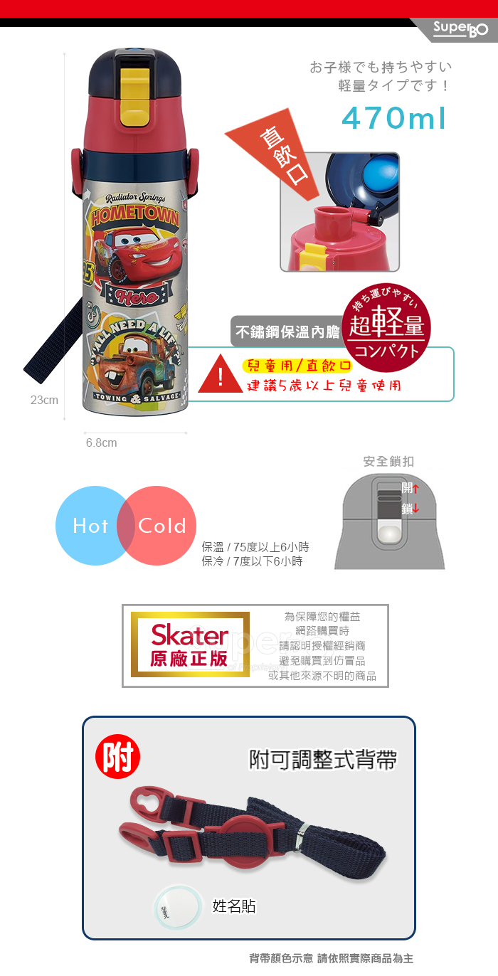 Skater不鏽鋼直飲保溫水壺(470ml) 專為兒童設計,輕量易攜,