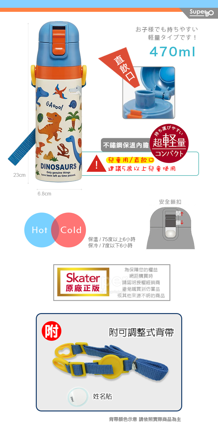 Skater不鏽鋼直飲保溫水壺(470ml) 專為兒童設計,輕量易攜,
