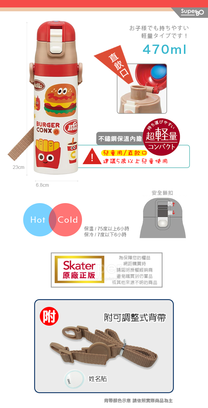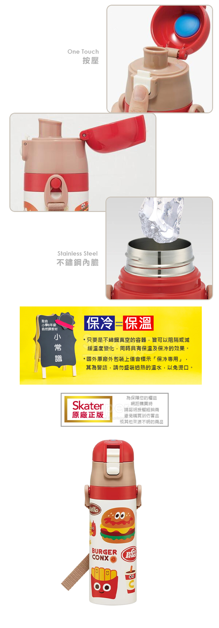 Skater不鏽鋼直飲保溫水壺(470ml) 漢堡Burger